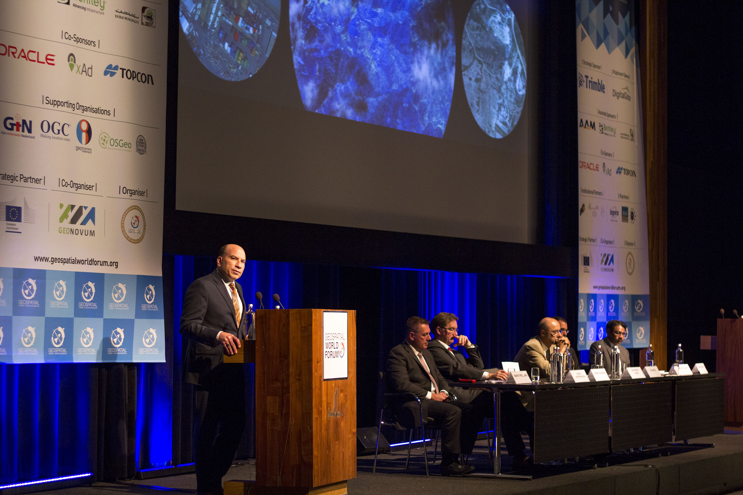 Conference photography in The Netherlands Speaker on the podium during the awards ceremony of GeoBim World Forum in Rotterdam WTC, in The Netherlands Like Loading...