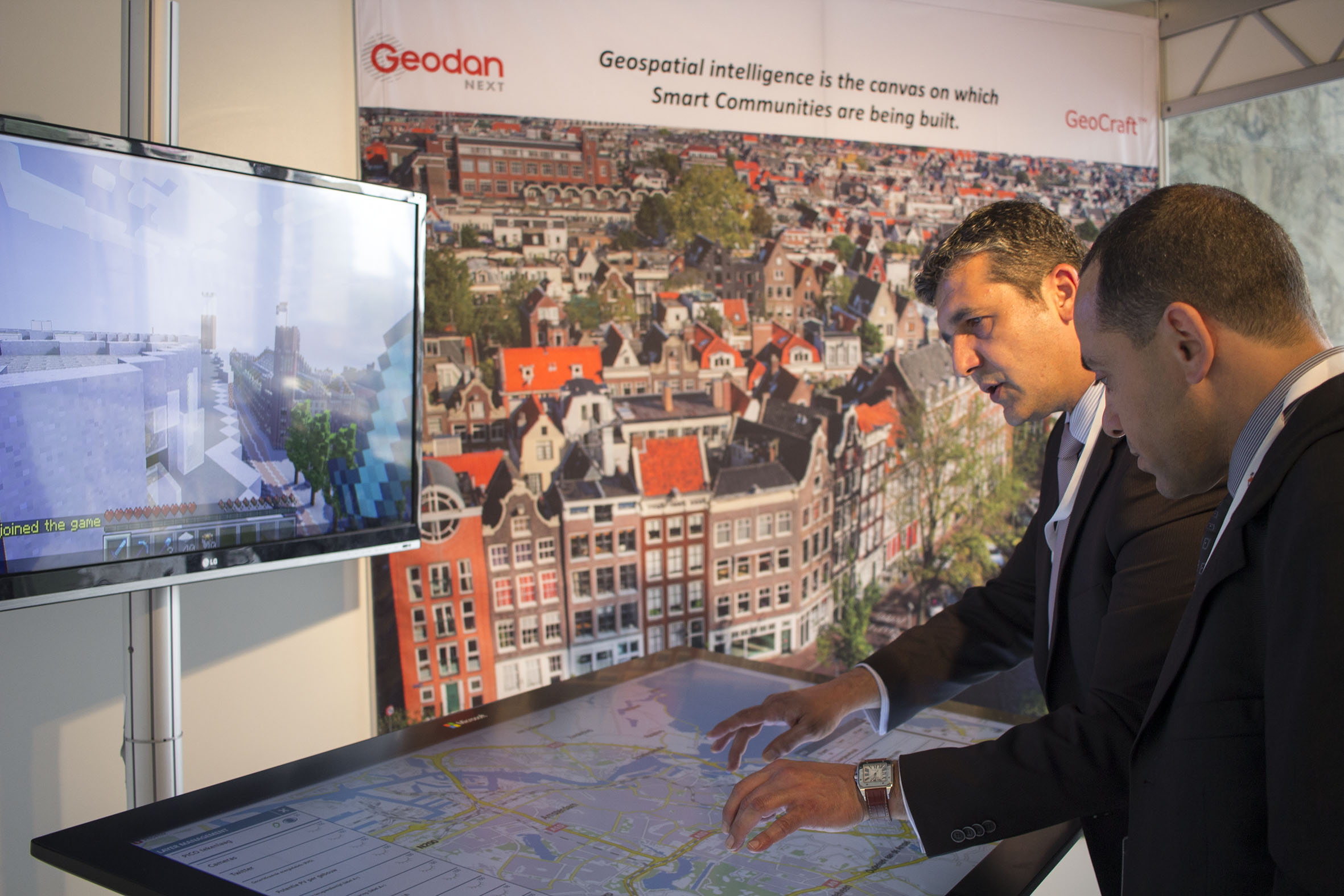Conference photography in The Netherlands Two men using a touchscreen panel during a GeoBim conference in The Netherlands Like Loading...